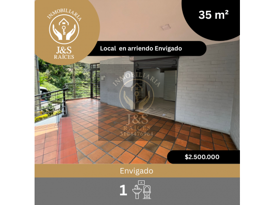 Local en arriendo ubicado en el sector La Mina, en Envigado, en una zona comercial con buena afluencia y fácil acceso. El inmueble cuenta con un área aproximada de 35 metros cuadrados, distribuidos en un salón principal y un baño. Adicionalmente, dispone de una terraza exterior que puede ser aprovechada para ubicar mesas u otro tipo de adecuaciones según la necesidad del negocio.
