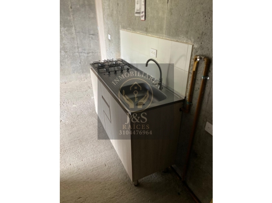 El apartamento cuenta con sala comedor, espacio para cocina, zona de ropas, 2 habitaciones (la principal con baño privado), estudio o posibilidad de una tercera habitación y baño social con ducha.