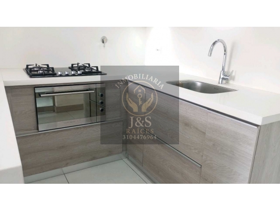 El apartamento está equipado con una cocina integral con barra estilo americano, ideal para cocinar y compartir momentos en familia. También cuenta con clósets en cada habitación, para brindar un mayor espacio de almacenamiento, y un baño en la habitación principal para mayor comodidad.